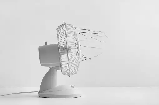 A desk fan is a small, portable electric appliance designed to provide a localized breeze, offering relief from hot weather or stuffy environments.